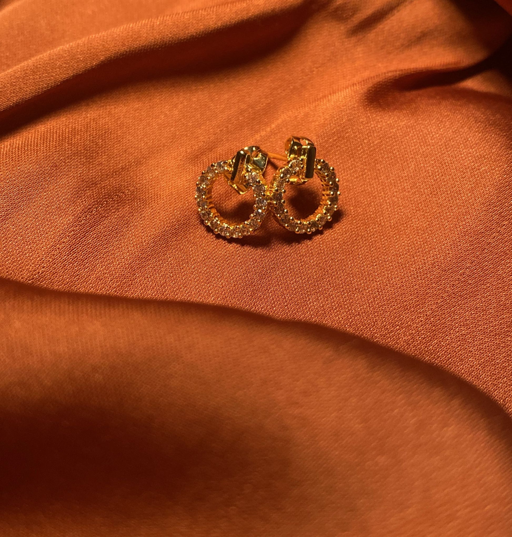 Simple Style Round Wings Hollow Out Inlay Copper Zircon 18K Gold Plated Ear Studs
