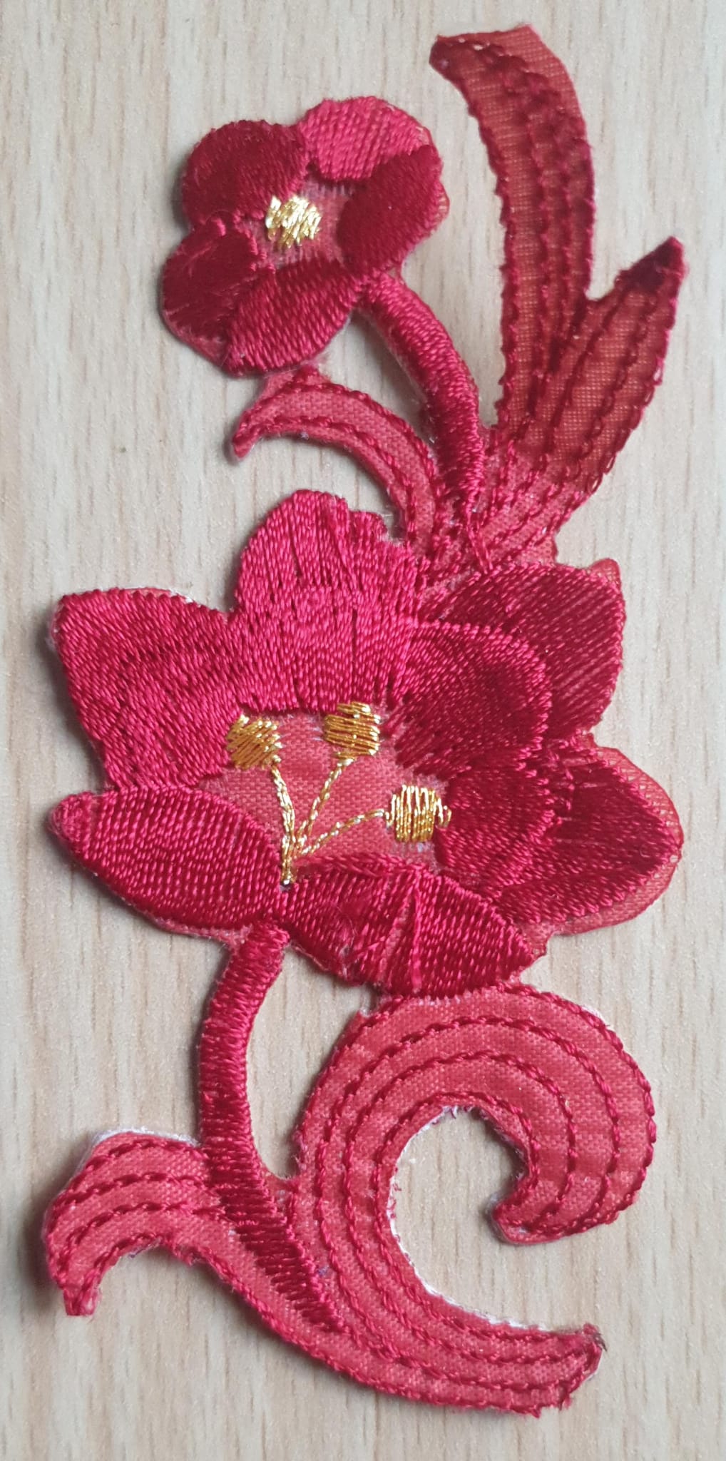 DIY Craft Vibrant Colour -Red- Flower Pair Embroidered 9x4.5 cm Sew-On Glue-On Appliqué Patch