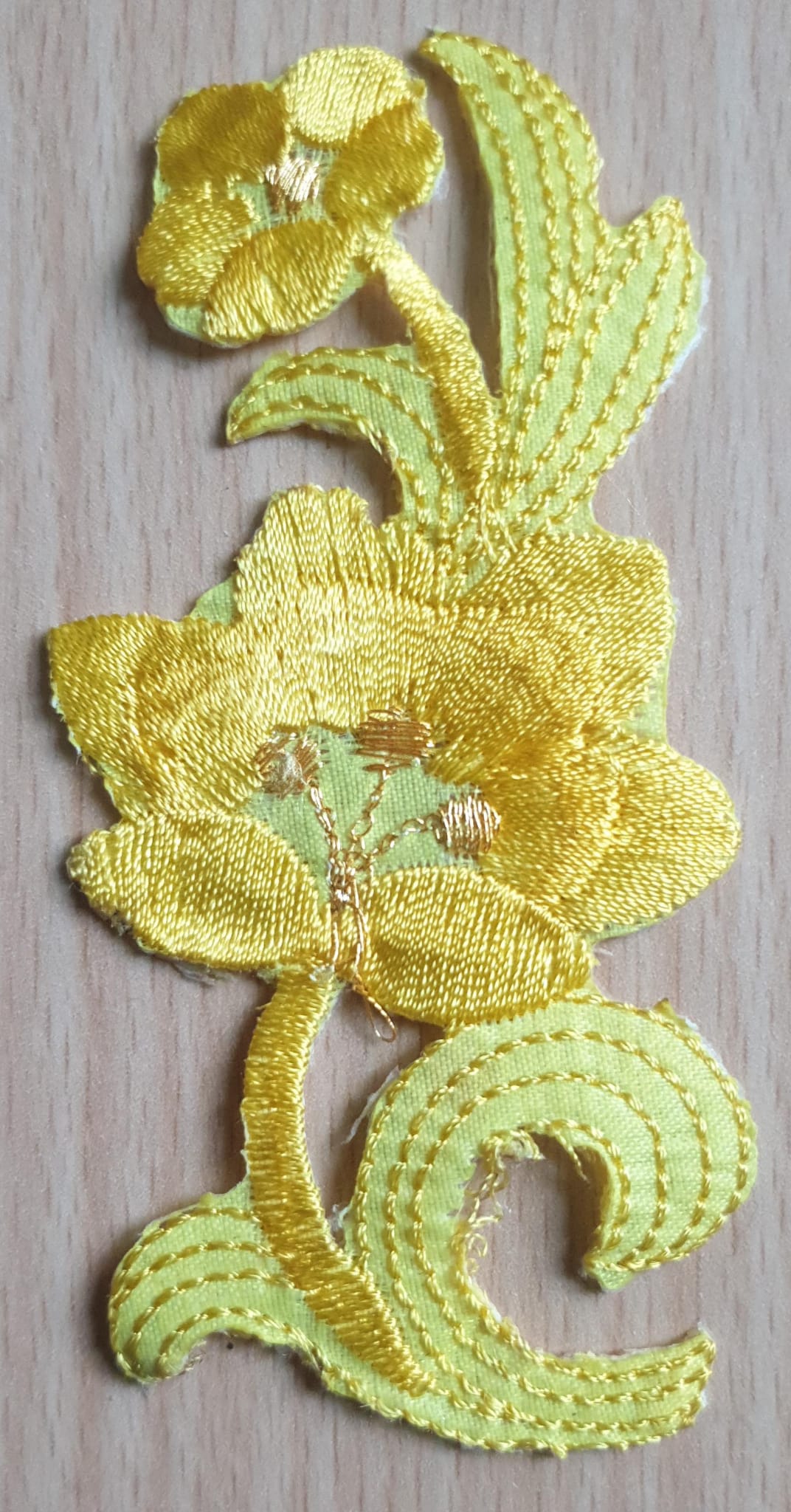 DIY Craft Vibrant Colour -Yellow- Flower Pair Embroidered 9x4.5 cm Sew-On Glue-On Appliqué Patch