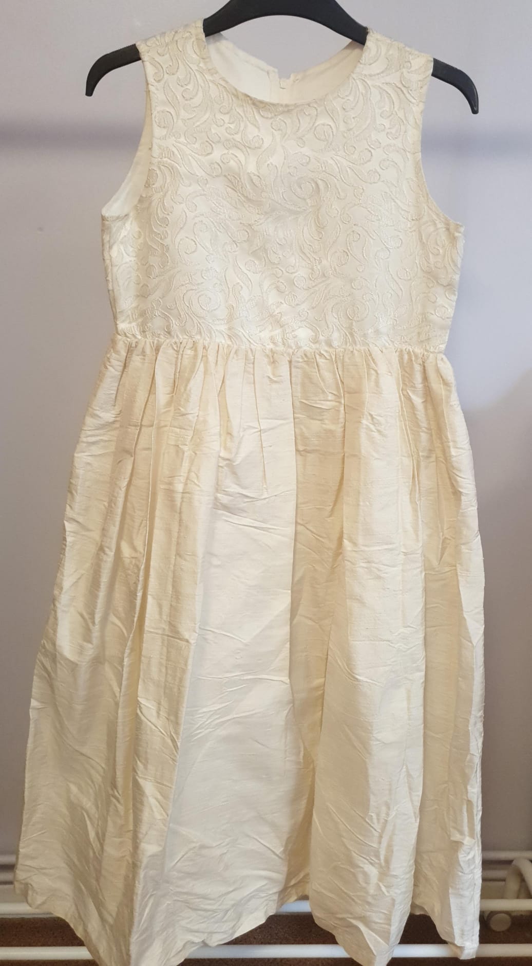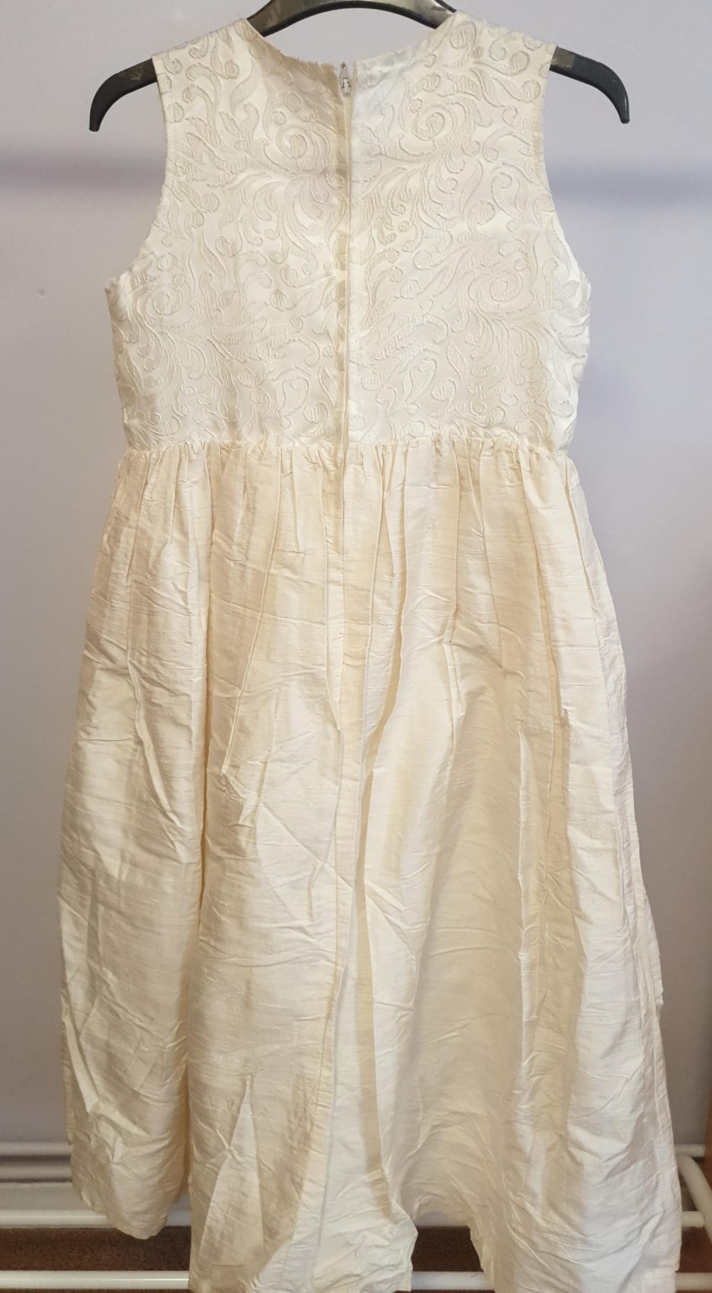 "Ibaiza Satan White Baby Dress with Embroidery – A charming white baby dress crafted from soft satin, beautifully detailed with delicate embroidery. Perfect for special occasions, offering both comfort and timeless elegance for your little one."