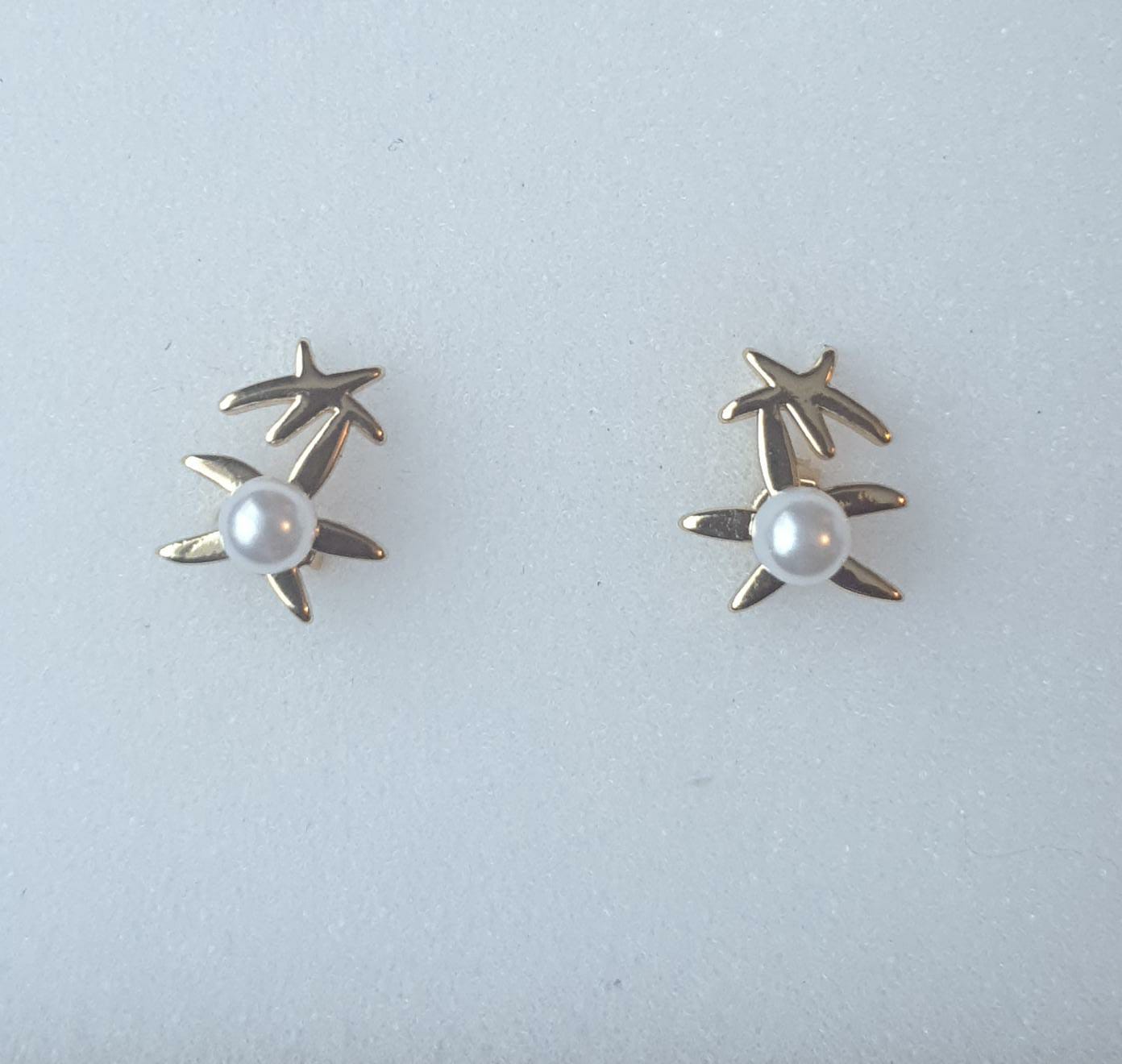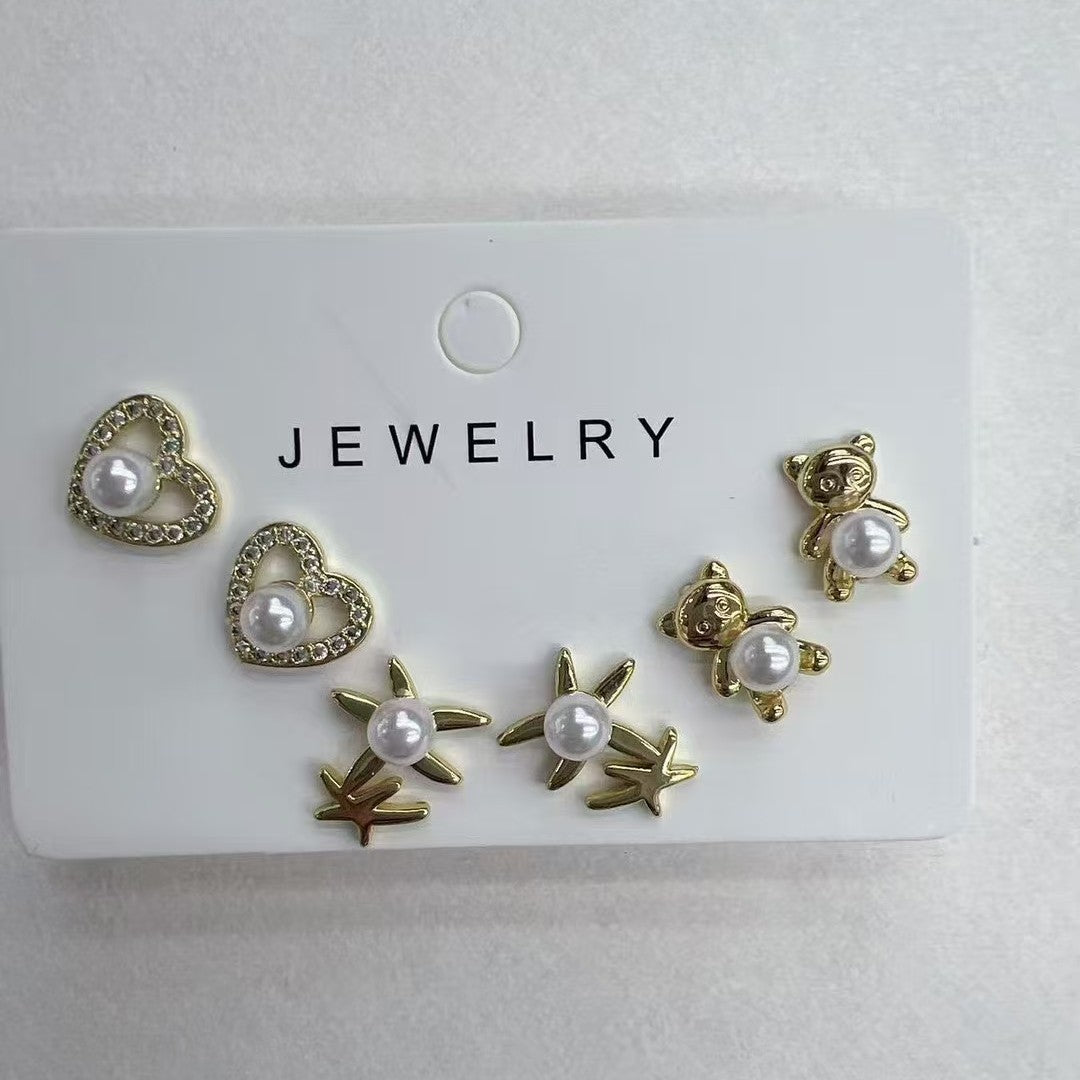 Style Casual Cute Ball on Stars Shape Polishing Hollow Out Inlay Copper Acrylic Pearl Zircon 18K Gold Plated Ear Studs