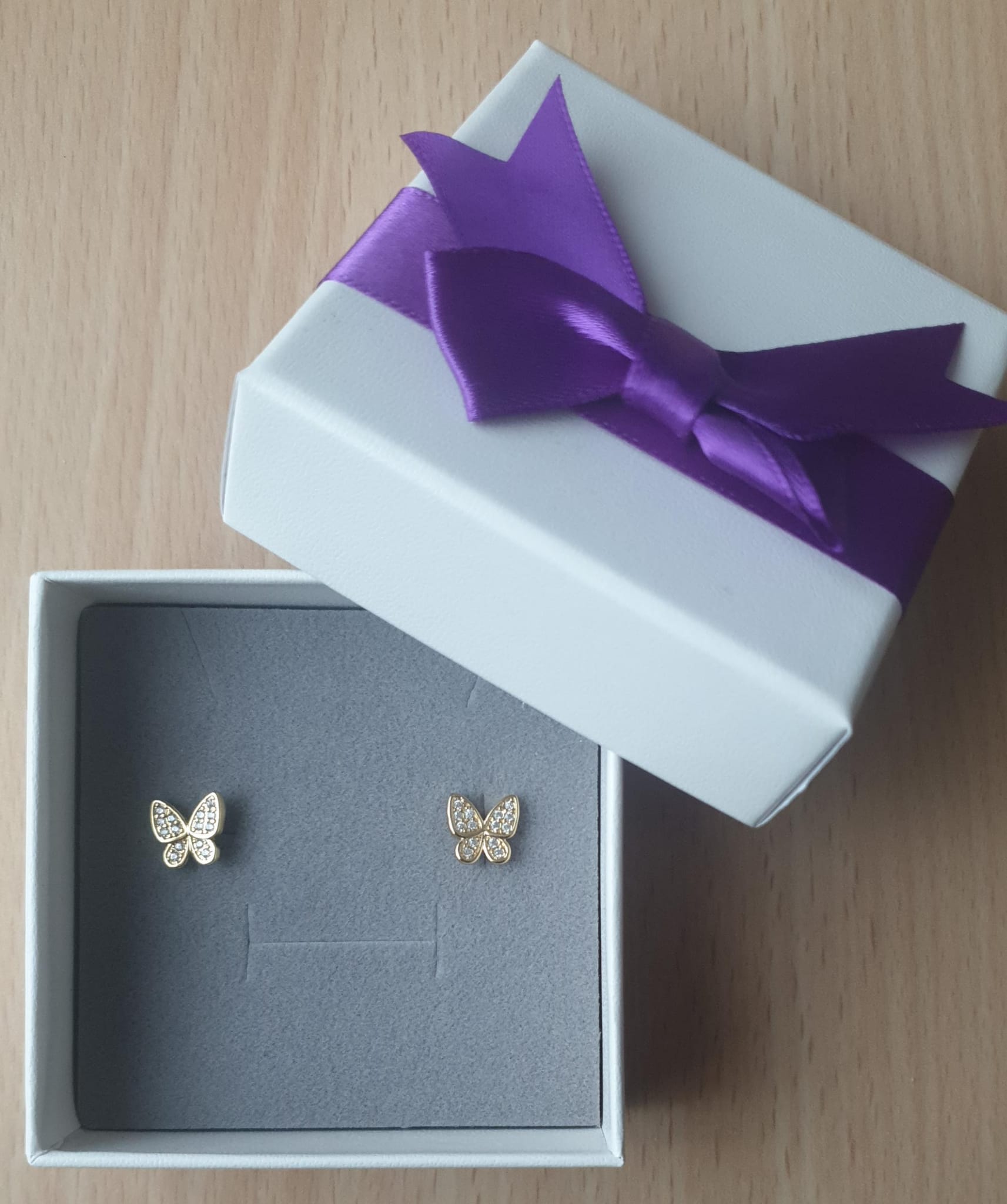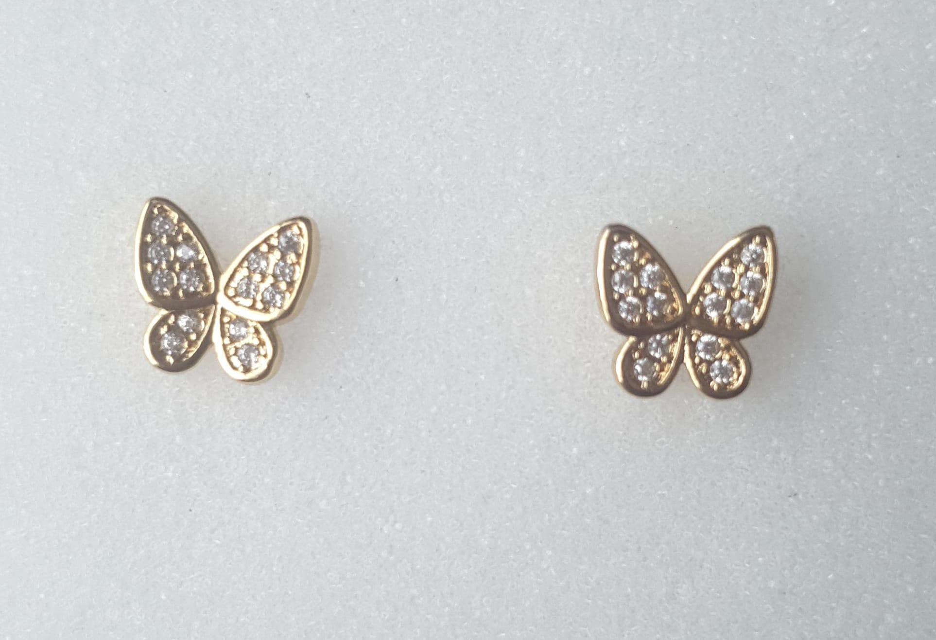 Style Casual Cute Butterfly Net Shape Polishing Hollow Out Inlay Copper Acrylic Pearl Zircon 18K Gold Plated Ear Studs