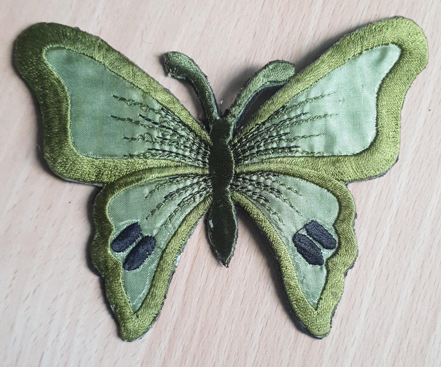 Vibrant Colour -Green- Butterfly Embroidered 13x10 cm Sew-On Glue-On Appliqué Patch