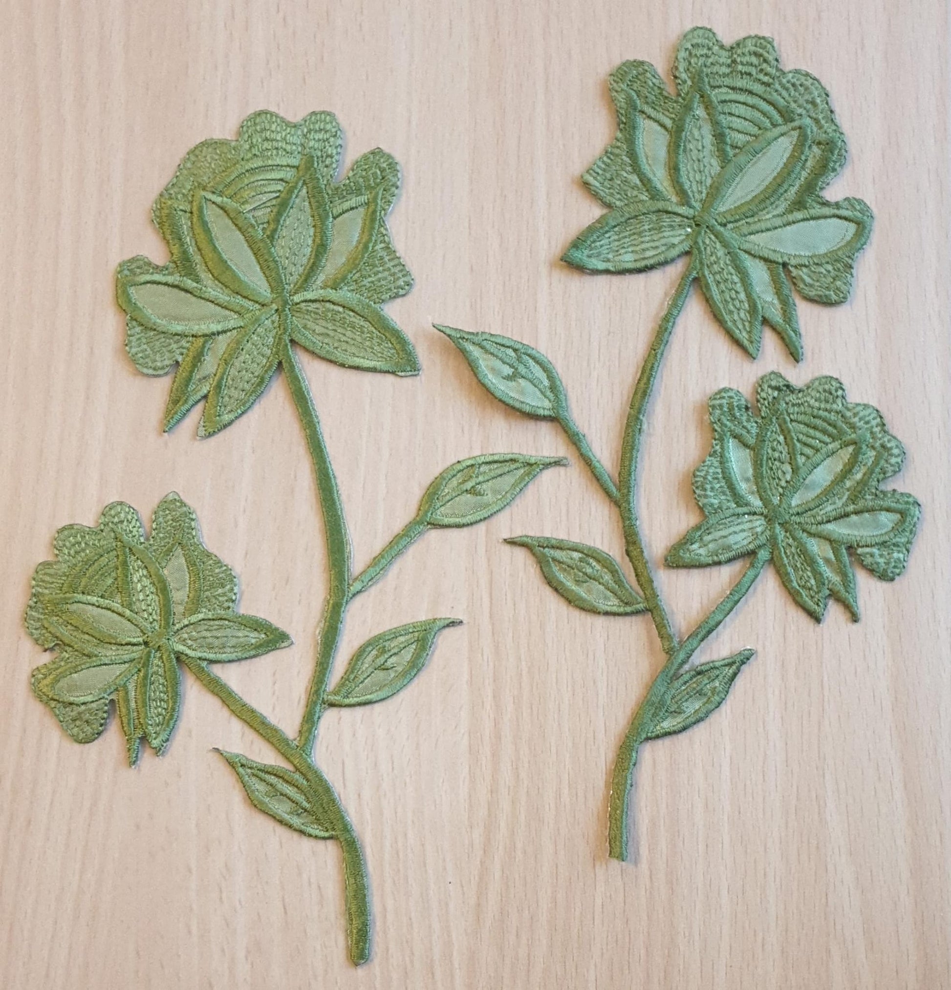 Vibrant Colour -Green- Flower Pair Embroidered 13x10 cm Sew-On Glue-On Appliqué Patch (Copy)