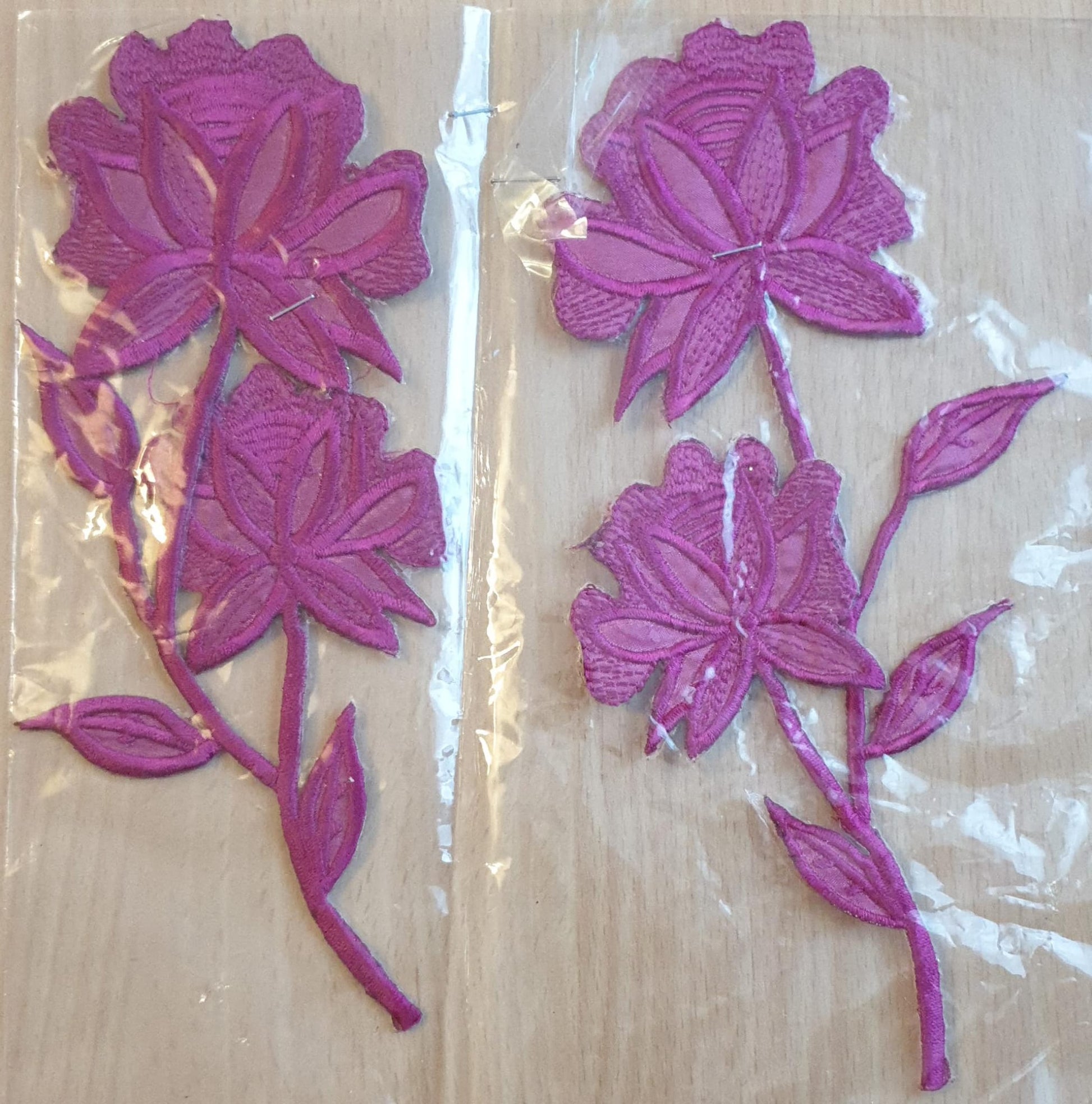 Vibrant Colour -Purple- Flower Pair Embroidered 13x10 cm Sew-On Glue-On Appliqué Patch