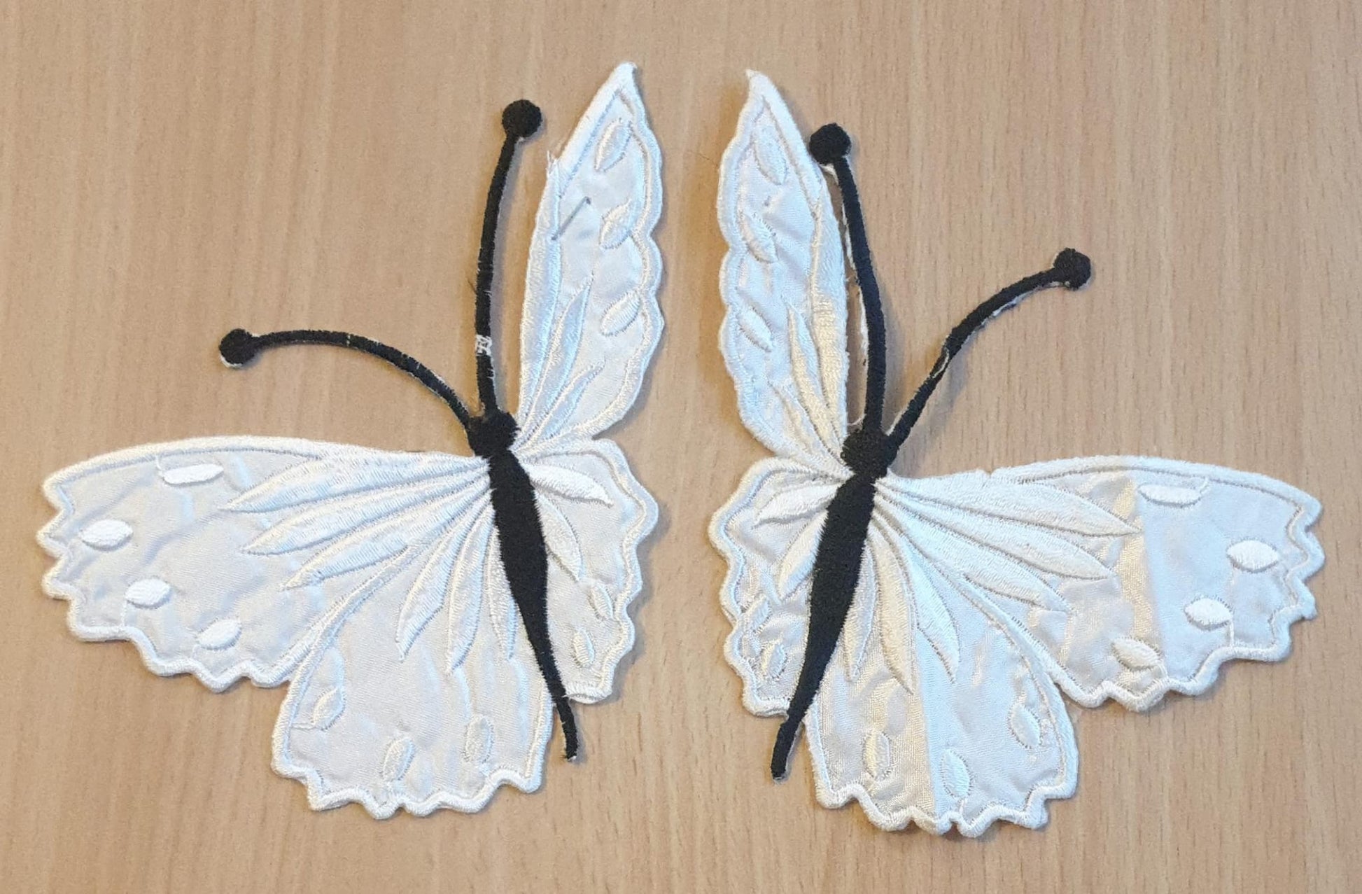 Vibrant Colour -White- Butterfly Embroidered 13x10 cm Sew-On Glue-On Appliqué Patch