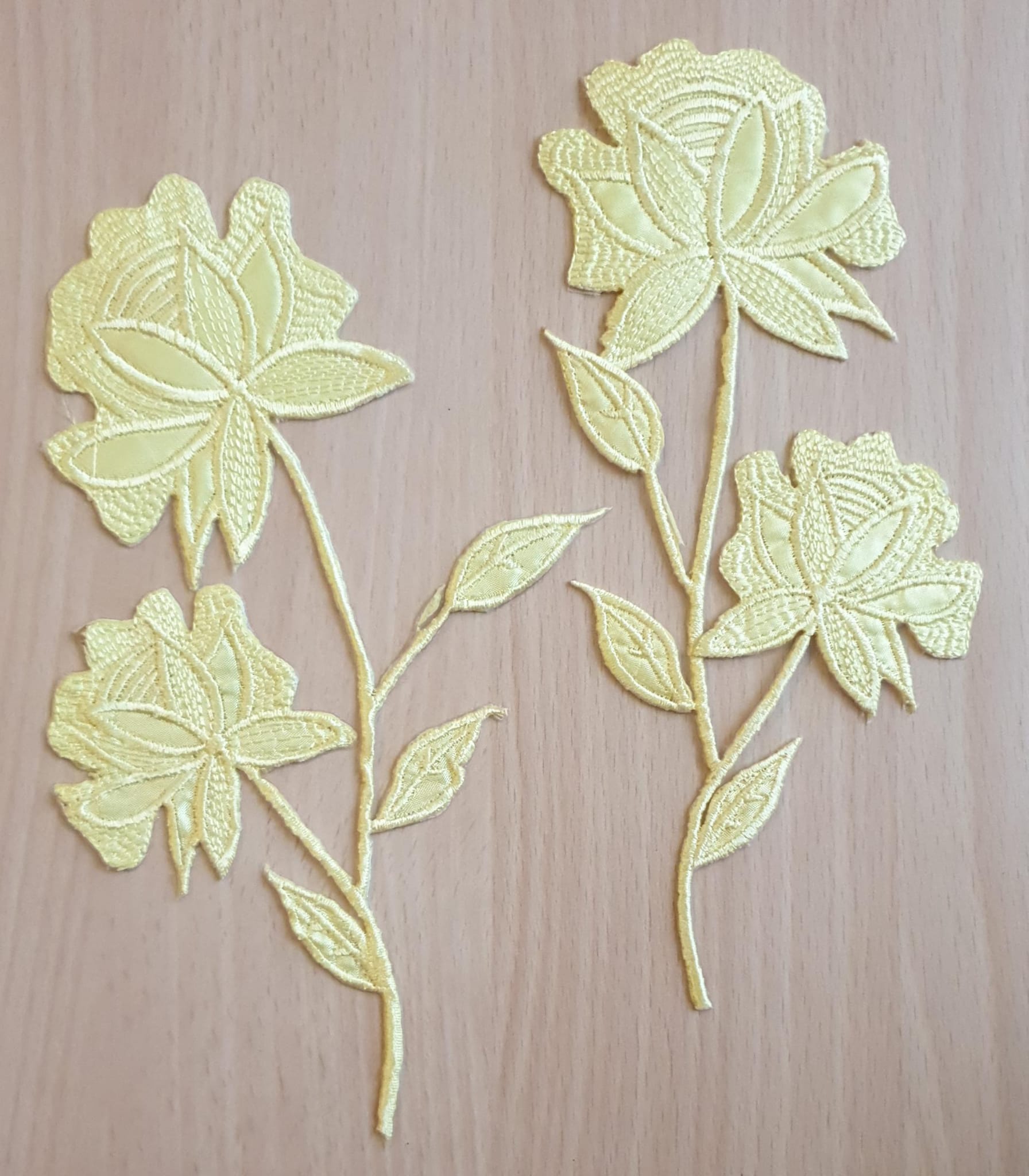 Vibrant Colour -Yellow- Flower Pair Embroidered 13x10 cm Sew-On Glue-On Appliqué Patch