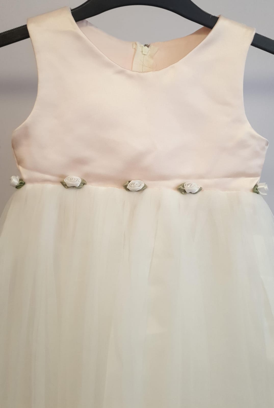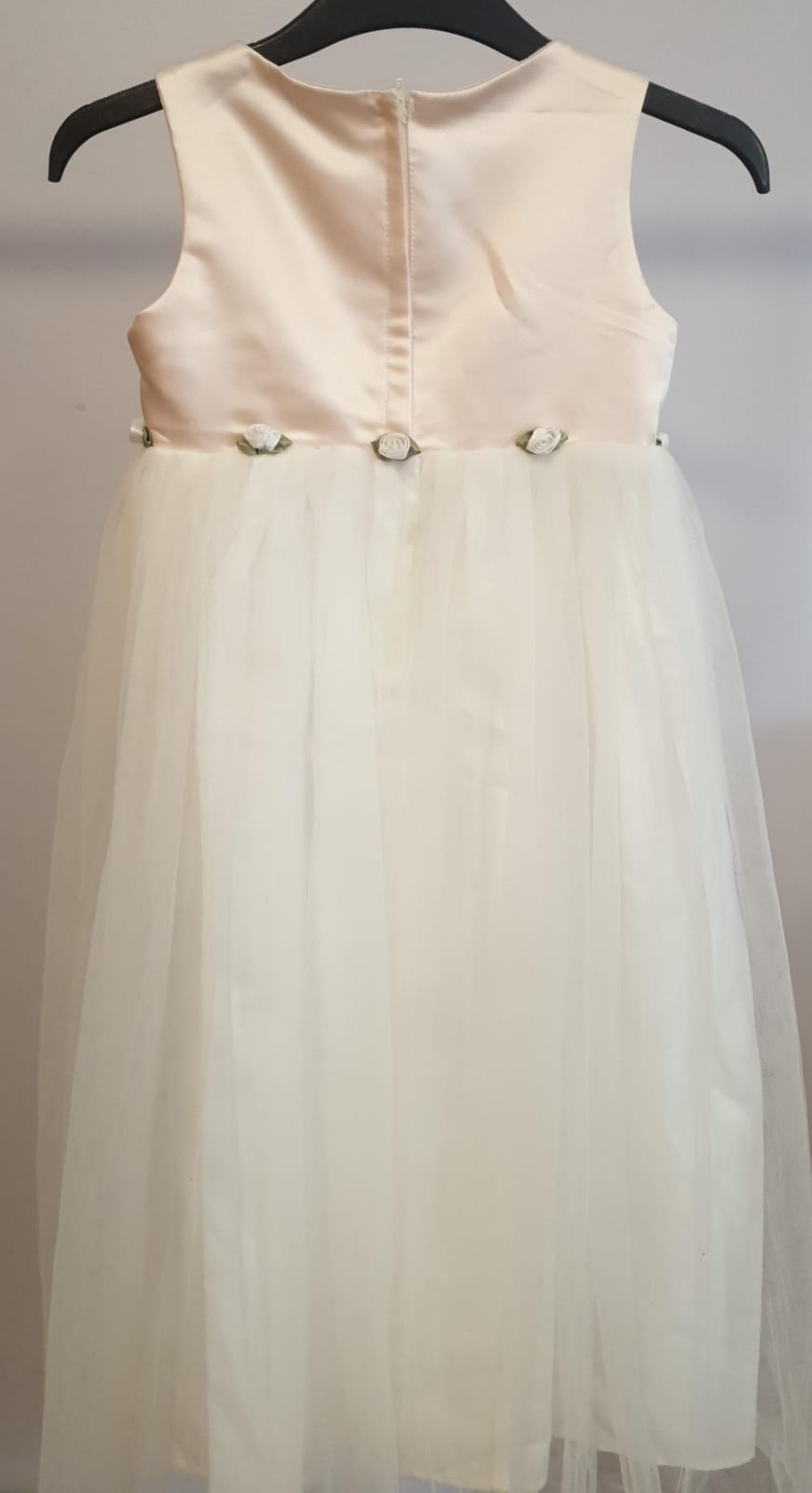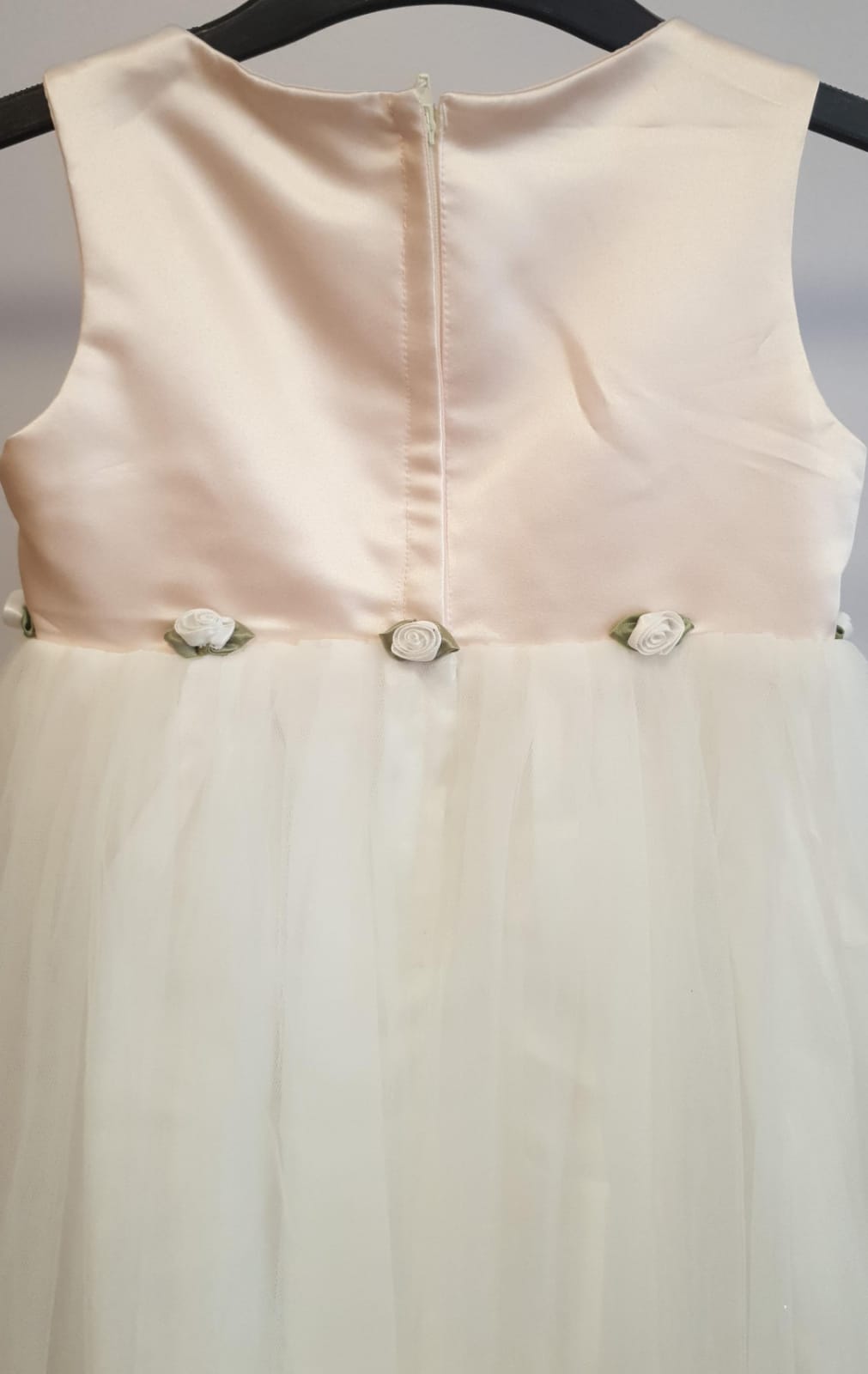 "Ibaiza Silk White Baby Dress with Pink Top – A lovely silk dress featuring a pure white base and a soft pink top accent. Elegant, comfortable, and perfect for celebrations or special occasions."